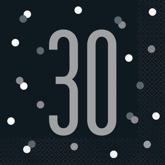 Pack of 16 Birthday Black & Silver Glitz Number 30 Luncheon Napkins