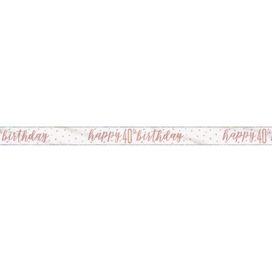 9ft Glitz Rose Gold Foil Banner "Happy 40th Birthday"