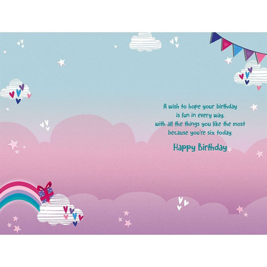 Unicorn & Rainbow 6th Birthday Card