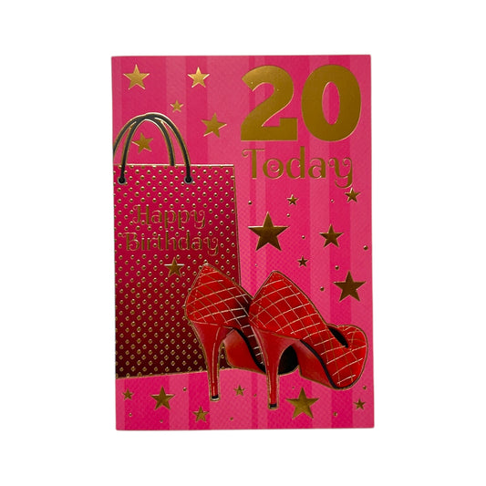 Age 20 Female Traditional Shopping Bags and Shoes Design Birthday Card