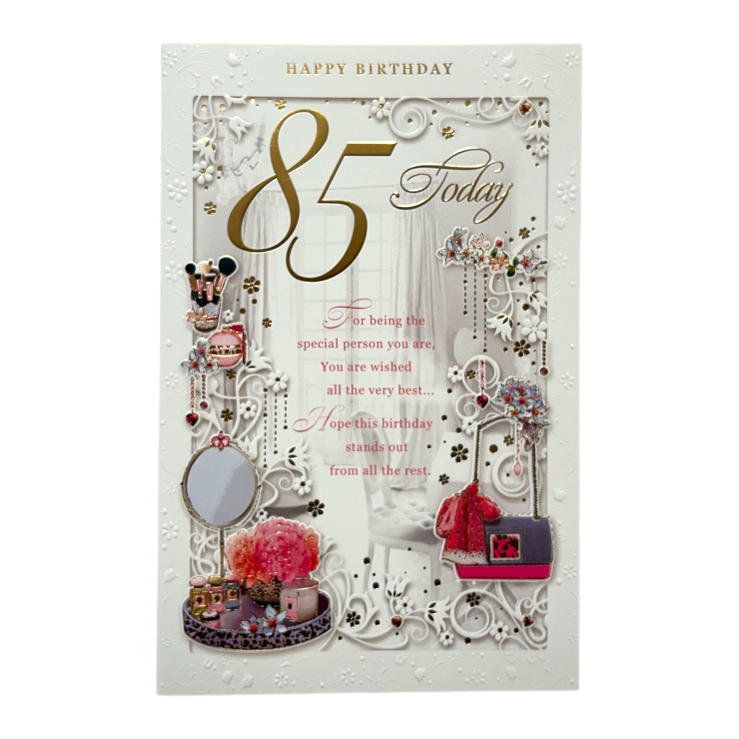 85 Today Open Female Birthday Opacity Card. Approx Size: 270 x 185mm.
