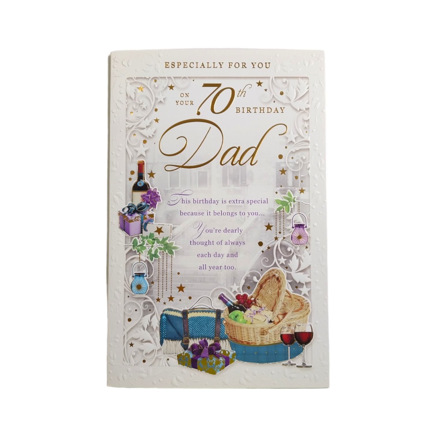 On Your 70th Birthday Dad Opacity Card. Approx Size: 270 x 185mm.
