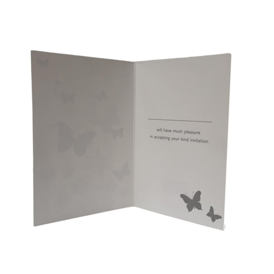 Open Acceptance Silver Metallic Text Butterfly Card Send Any From 2 Colour