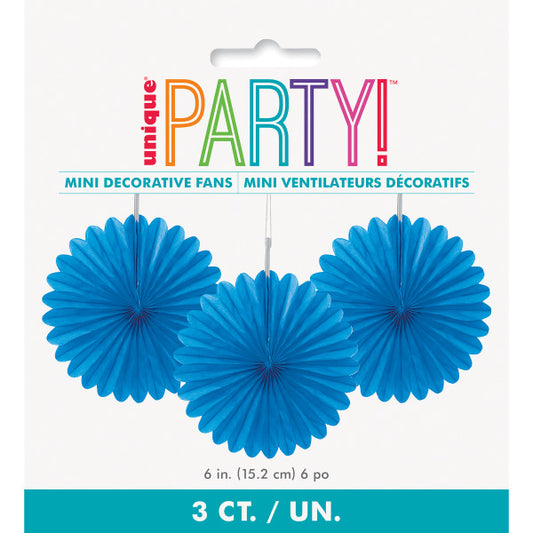 Pack of 3 Royal Blue Solid 6" Tissue Paper Fans