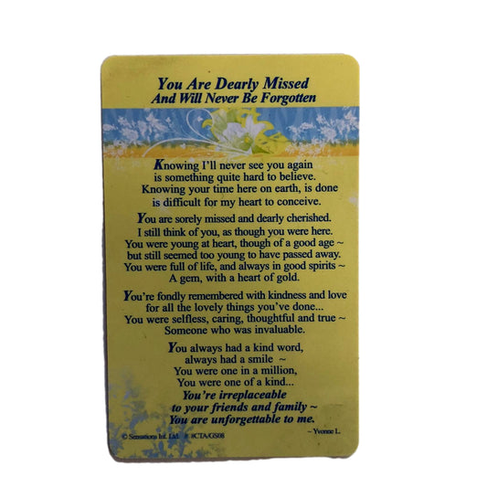 Sentimental Graveside Card You are Dearly Missed and Will Never be Forgotten