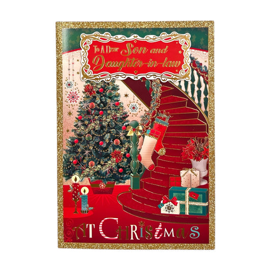 To a Dear Son and Daughter In Law Beautiful Decorative Stair Design Christmas Card