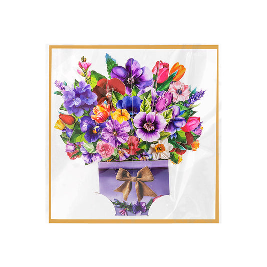 Floral Fantasy Paper Bouquet 3D Vase Pop Up Card - Mother's Day Birthday Wedding Anniversary