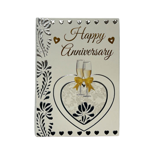 Traditional Champagne Gold and Silver Design Anniversary Card