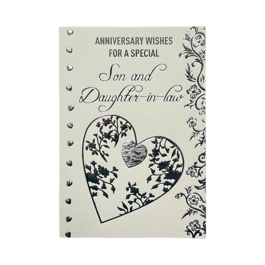 Son & Daughter-In-Law Traditional Heart Design Anniversary Wishes Card