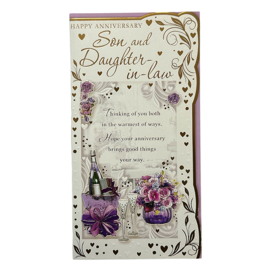 Son & Daughter-in-Law Purple Floral Design Opacity Anniversary Card