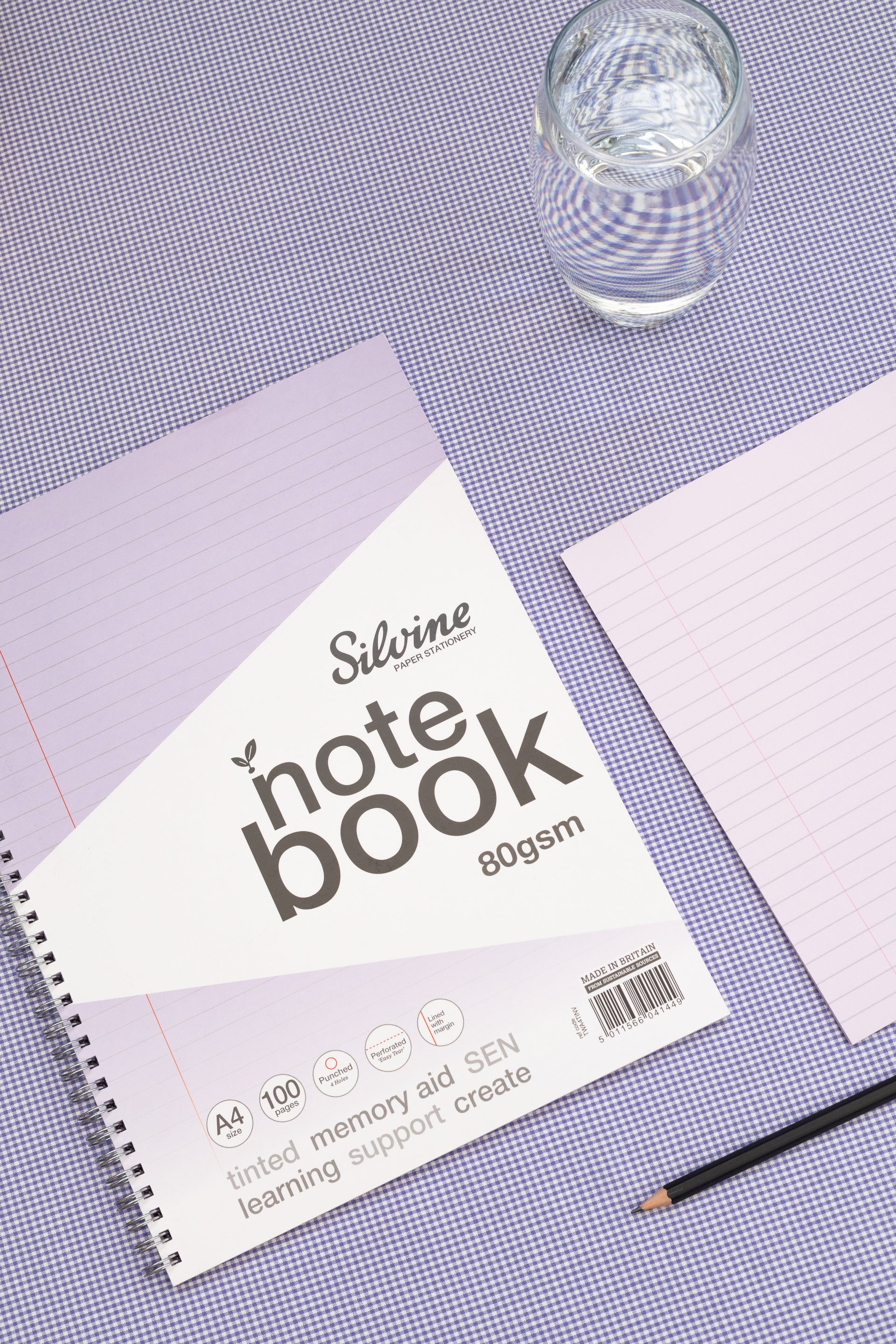 - A4+ 100 Pages Twin Wire SEN Lilac Paper Dyslexia Notebook - Lined with Margin