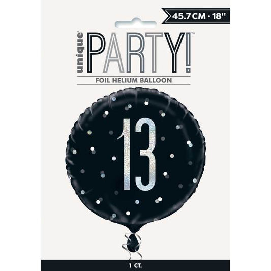 Birthday Black Glitz Number 13 Round Foil Balloon 18"