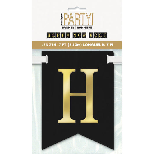 7ft Foil Gold & Black "Happy New Year" Pennant Banner