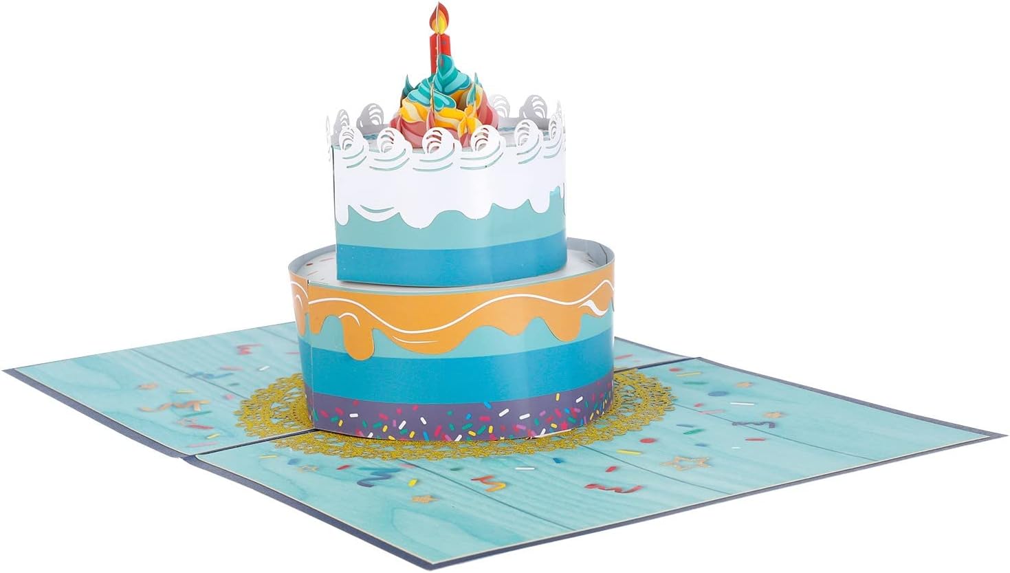 - Blue Beautiful Round Cake Design 3D Pop Up Birthday Card
