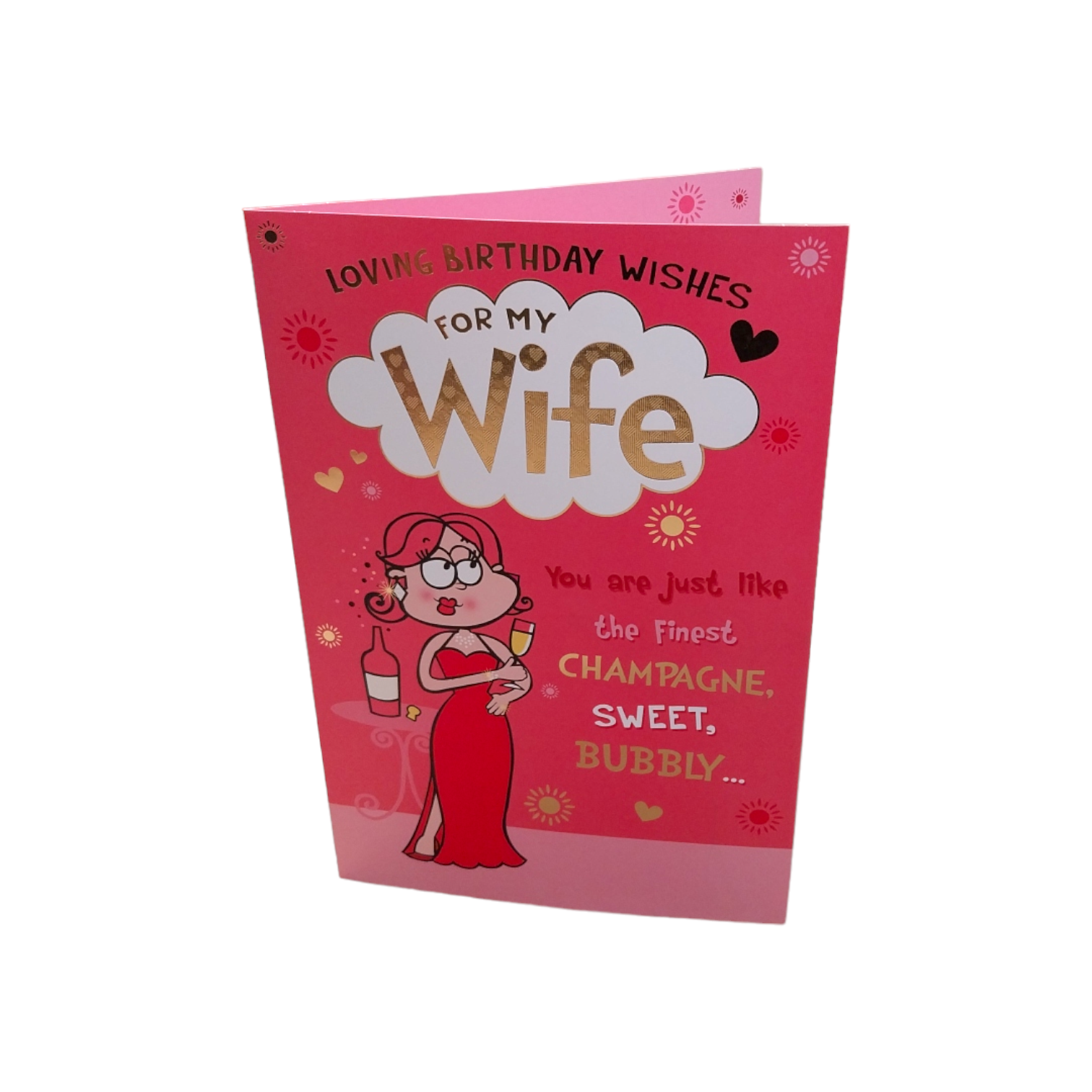 Loving Birthday Wishes For My Wife Lady with Champagne Design Card. Approx Size: 230 x 155mm.