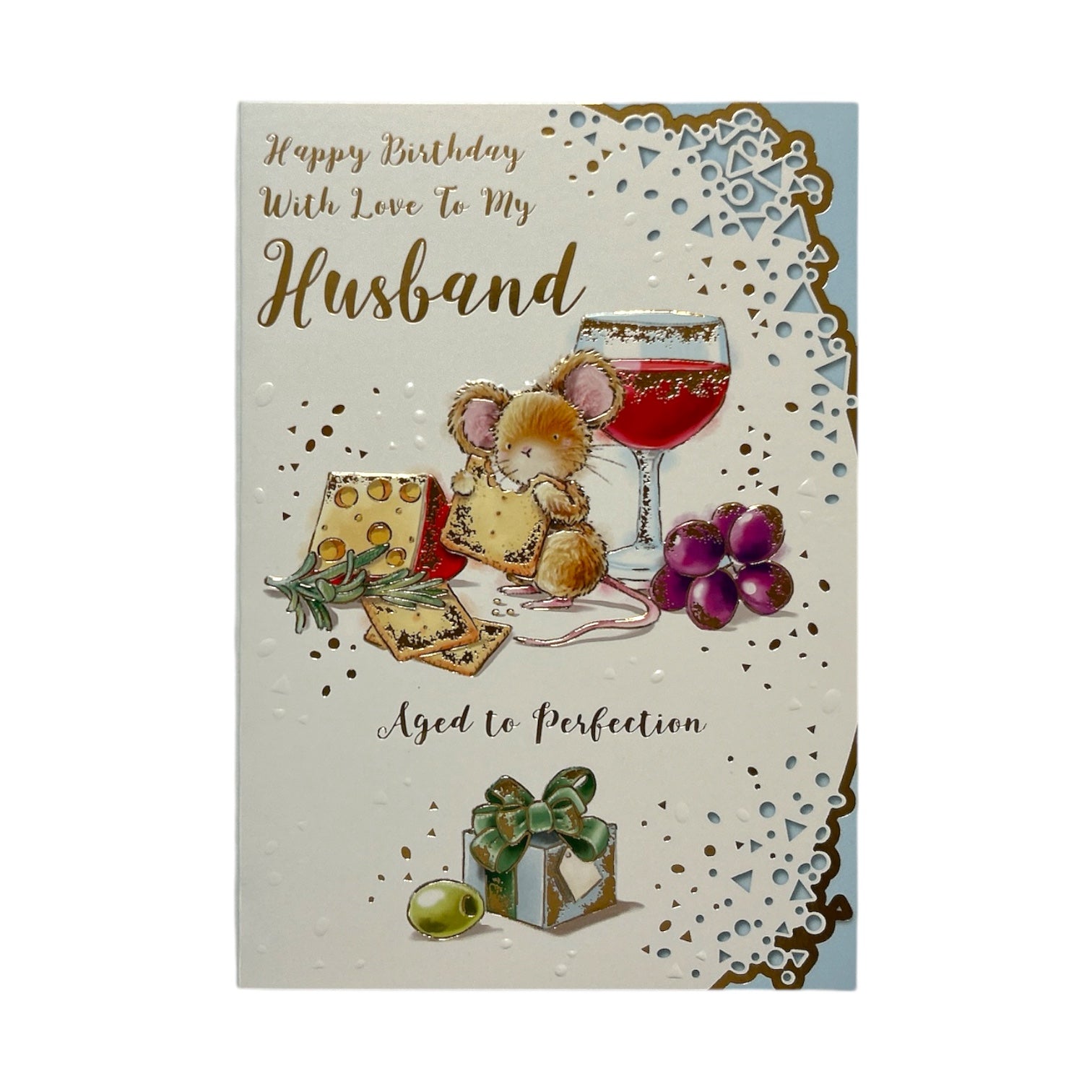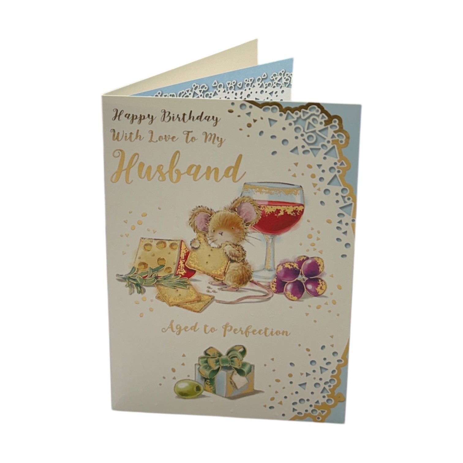 - To My Husband Mouse Munching Cheese Design Birthday Card