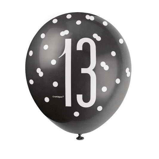 Pack of 6 Birthday Black Glitz Number 13 12" Latex Balloons