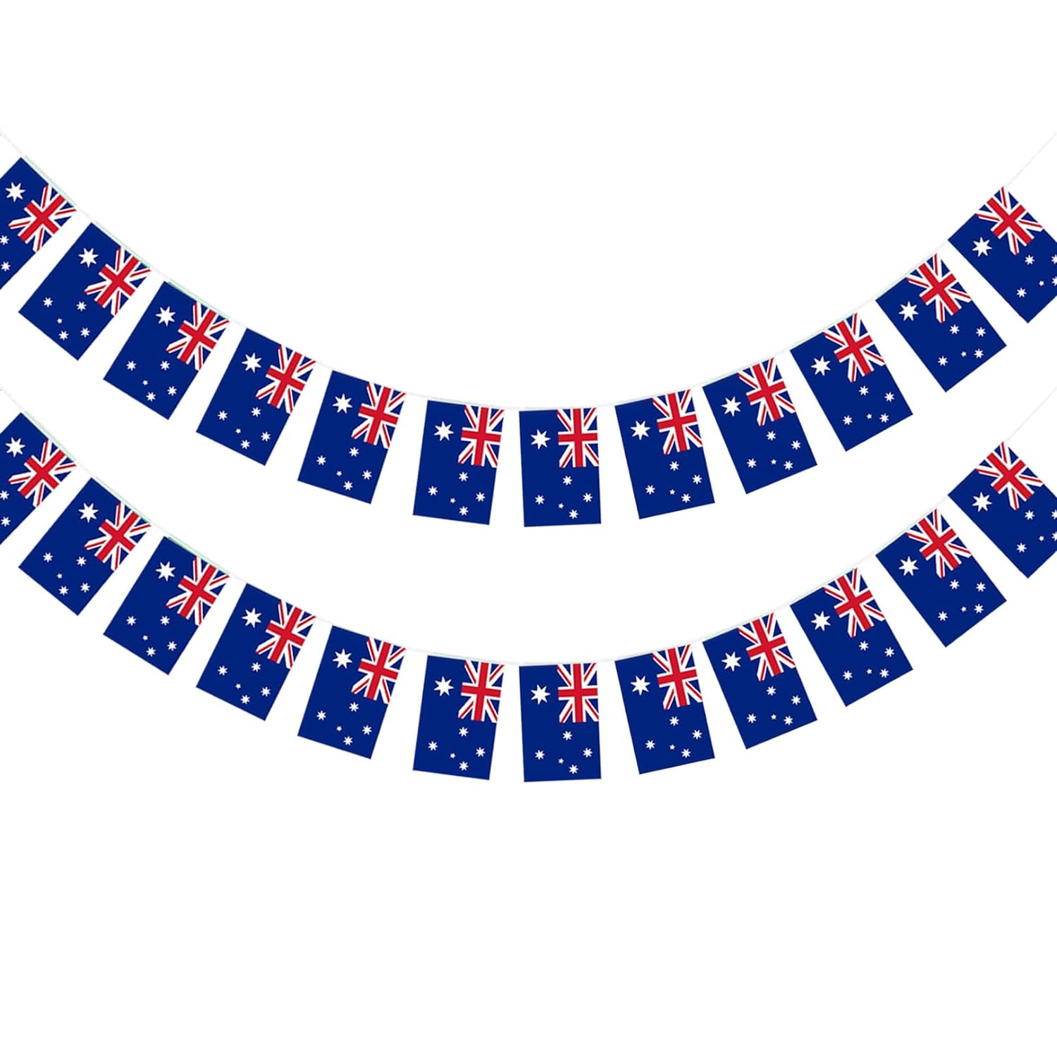 Australia Bunting 10m with 20 Flags. This bunting measures 10m and has 20 pennants. Material: PVC. Approx size of each Flag/ Pennant 30x20cm. Introducing the vibrant and versatile Bunting 10m with 20 Pennants, a delightful addition to any celebration or decorative endeavor. This charming bunting boasts a length of 10 meters, providing ample coverage to adorn various spaces with whimsical flair. Crafted with high-quality, durable materials, each of the 20 pennants is designed to withstand outdoor elements, making it suitable for both indoor and outdoor use. Whether you're hosting a festive gathering, sprucing up a garden party, or adding a pop of color to a room, this bunting is sure to captivate attention and evoke a sense of joy and celebration. With its eye-catching design and array of vibrant colors, it effortlessly infuses any setting with a playful and festive atmosphere. Ideal for birthdays, weddings, graduations, or simply adding a touch of charm to everyday life, the Bunting 10m with 20 Pennants offers endless possibilities for creative expression. Hang it along fences, walls, ceilings, or across outdoor spaces to instantly transform any environment into a visually stunning spectacle.