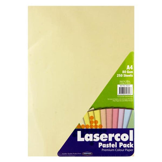 Pack of 250 Sheets A4 Assorted Pastel Coloured 80gsm Paper by Lasercol