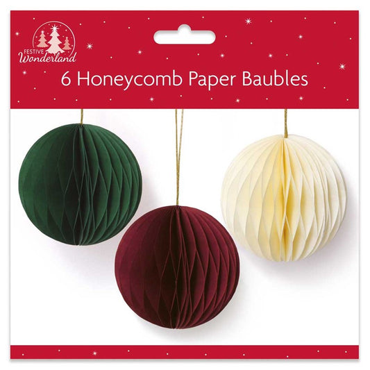 Pack of 3 Paper Honeycomb Christmas Traditional Round Baubles