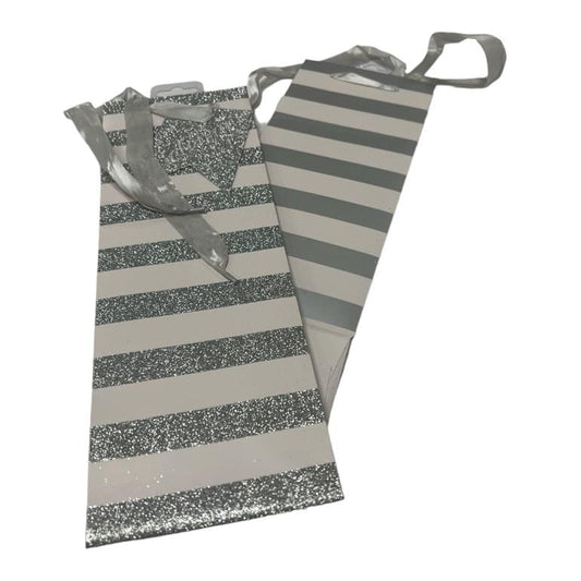 Pack of 12 Celebrate Silver Stripe Glitter Design Bottle Gift Bags