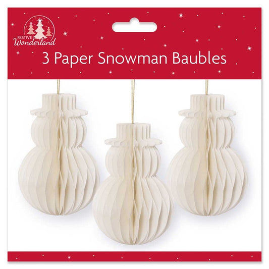Pack of 3 Snowman Honeycomb Paper Christmas Baubles Decorations