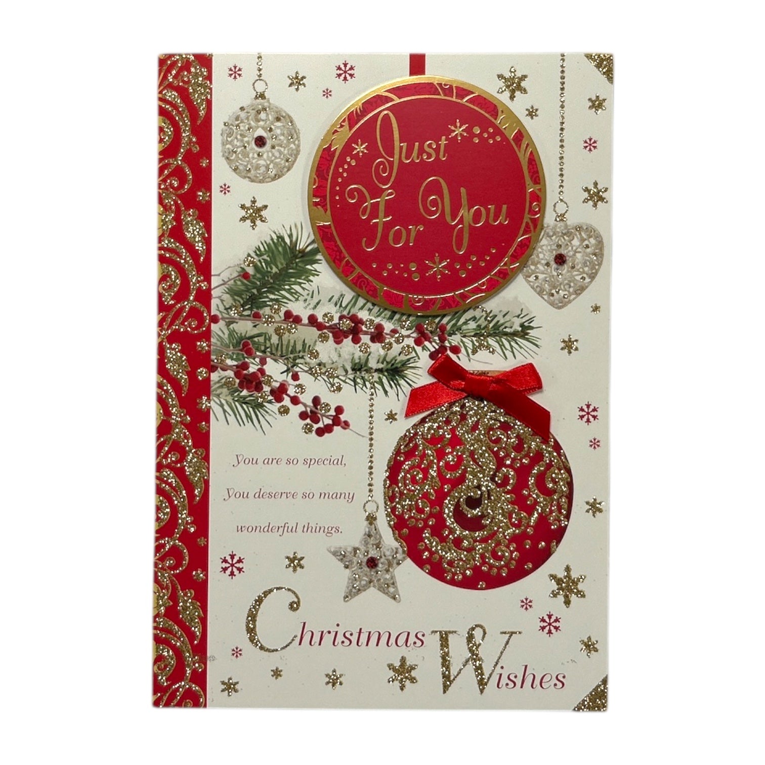- Just For You Hanging Decorative Baubles Design Open Christmas Card