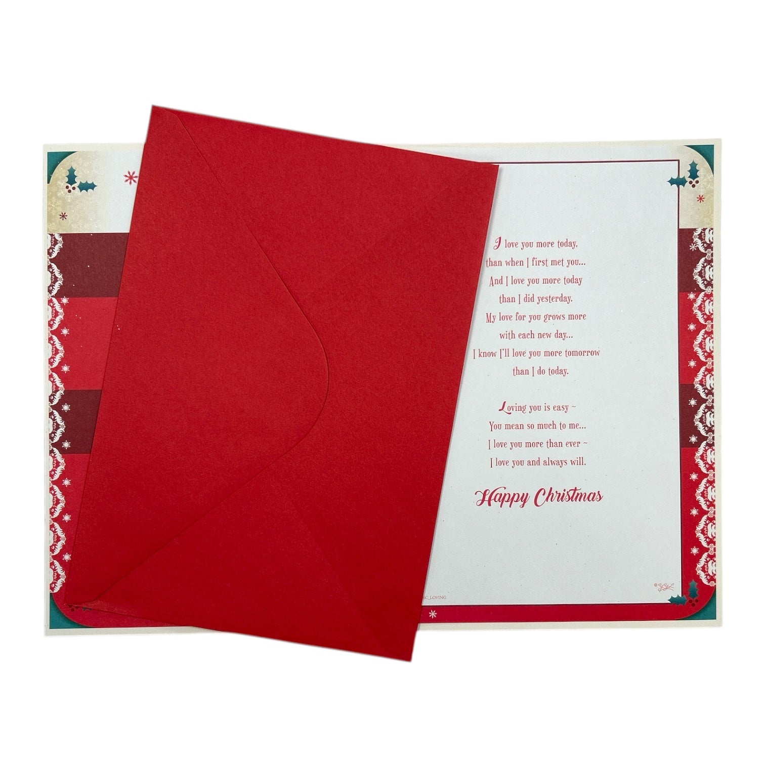 Celebrate the season with this elegant Christmas card for your wife, featuring two charming robins perched on ornate Christmas baubles. Set against a rich red background with green and gold accents, the intricate ornaments shimmer with glitter, adding festive sparkle and holiday magic. Traditional patterns and warm, celebratory colors create a cozy, joyful atmosphere, perfect for spreading seasonal cheer. The beautifully detailed design captures the warmth and love of the holidays, making this card an ideal way to show your appreciation and affection. Whether displayed on a mantel or kept as a keepsake, it’s a heartfelt reminder of love, joy, and festive spirit that your wife will treasure for years to come.