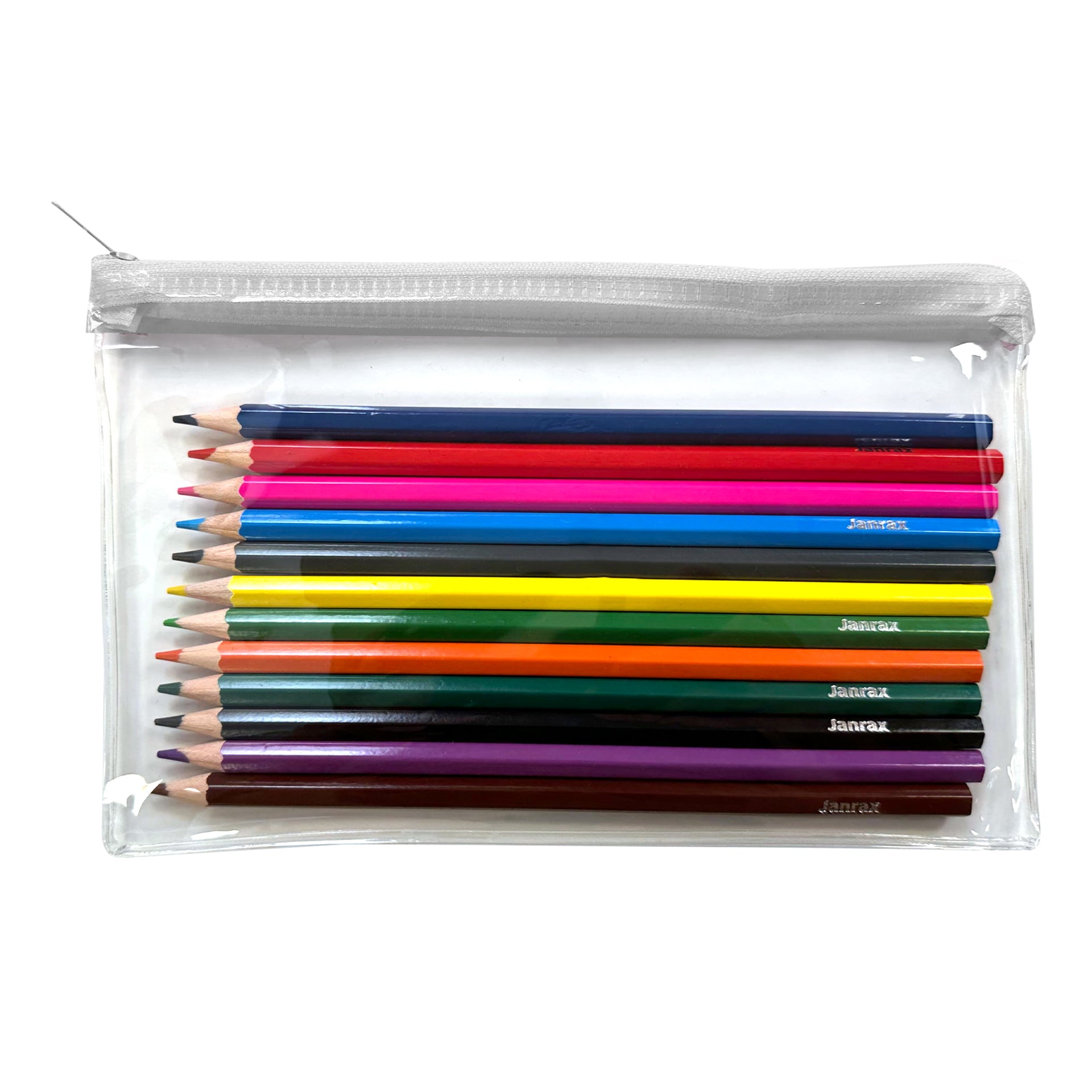 - Pack of 12 Colouring Pencils in White Zip Clear Pencil Case