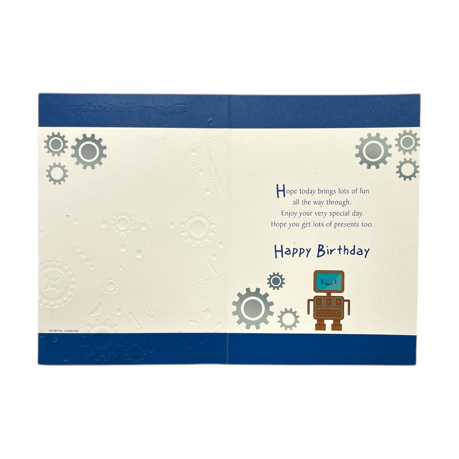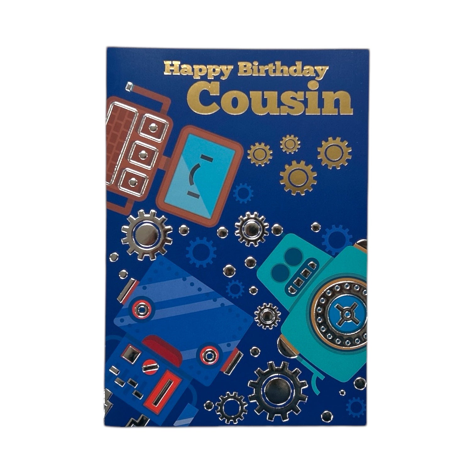 - Cousin Male Juvenile Blue Robots Design Birthday Card