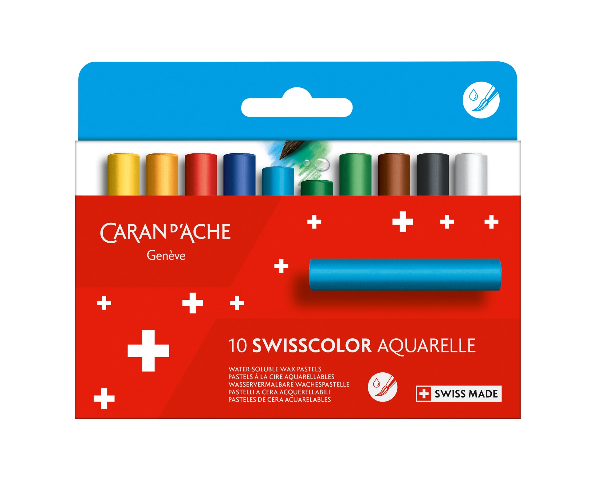 Water-soluble wax pastel. Soft, velvety texture creating no dust. Superior covering power. Excellent lightfastness. Bright colours.