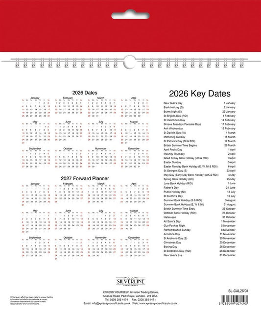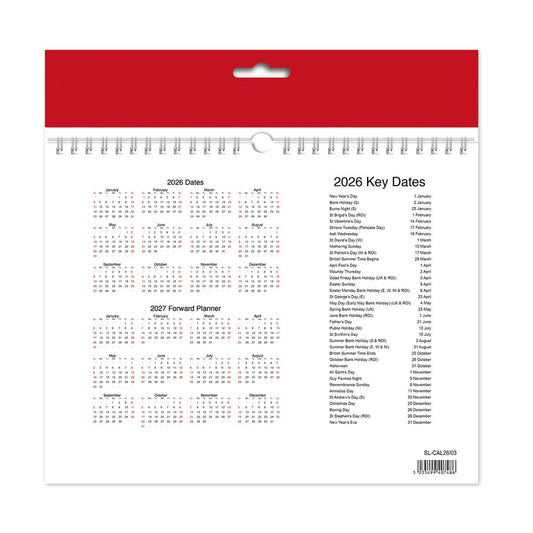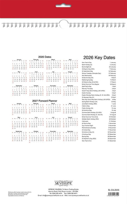 Year to View Calendar 2026 – Wall or Desk Mounted, 257 x 210mm