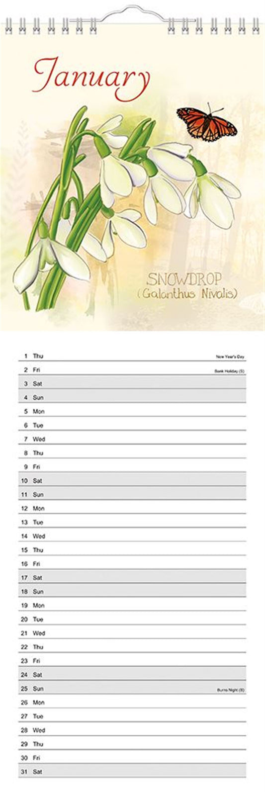 Slim Month To View Calendar 2026 – Botanical Flowers – 143mm x 417mm