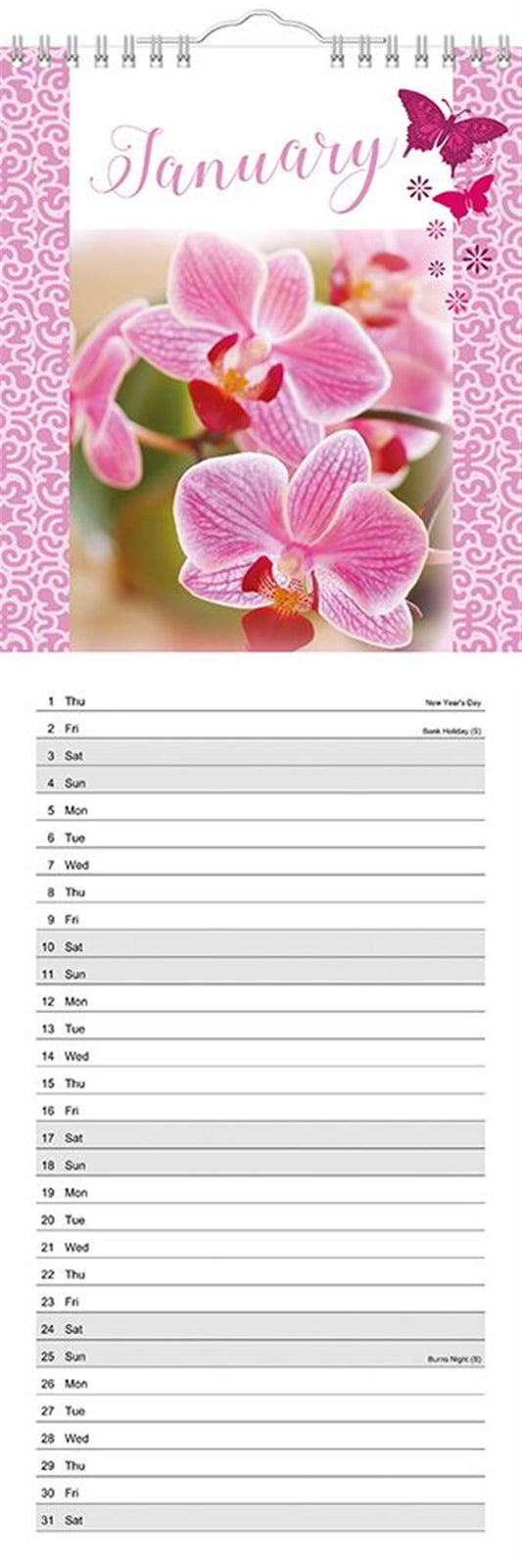 Slim Month To View Calendar 2026 – Photographic Floral – 143mm x 417mm