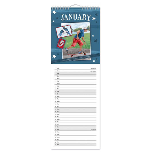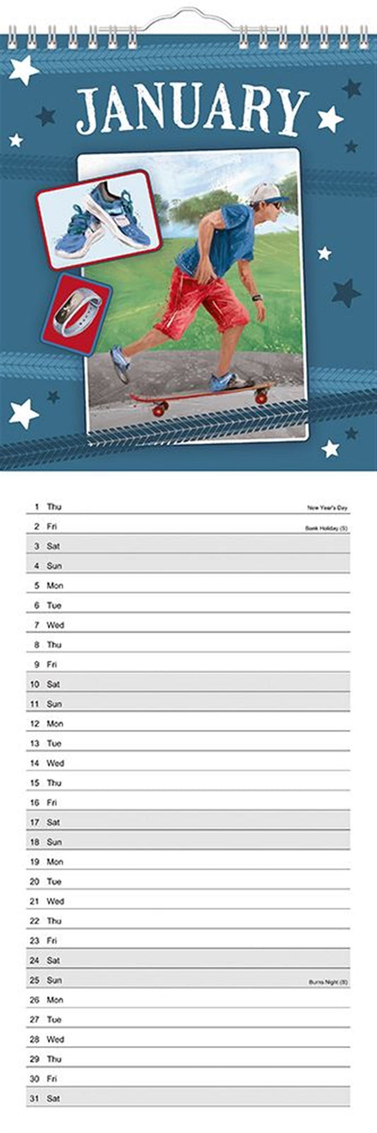 Slim Month To View Calendar 2026 – Sports – 143mm x 417mm