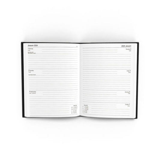 Janrax 2024 A4 2 Pages Per Day Black Desk Diary kf2a4bk24