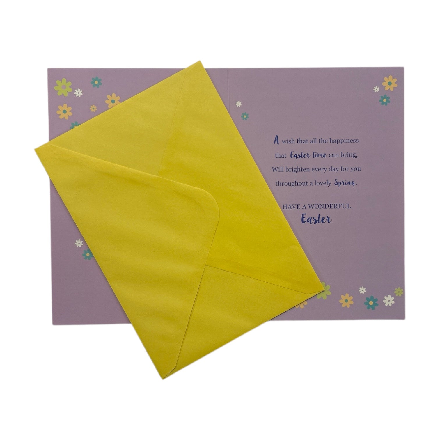 Celebrate Easter with this adorable lamb-themed greeting card, perfect for sharing warmth and joy. The design features a cute lamb framed by a delicate arrangement of small flowers, capturing the innocence and renewal of the season. Beautifully finished with embossed details and elegant foil accents, this card adds a touch of charm and sophistication. Complete with a coordinating envelope, it’s a lovely way to send heartfelt Easter wishes to family, friends, or loved ones. Card size: Approx. 19.5 x 14 cm.