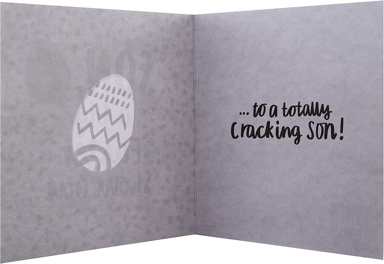 Raise a huge smile; and shout about how much your Son means to you; with this brightly designed Easter card; from Hallmark. Fully recyclable and made using material from well-managed; FSC-certified forests and other controlled sources. Features Gold Foil details and a 3D Add On. Card comes complete with a coordinating; Yellow; Hallmark Branded envelope. Message Inside Reads: …to a totally cracking son! Card Measures: 16cm by 16cm; Within UK 'Standard Letter' Size Limits.
