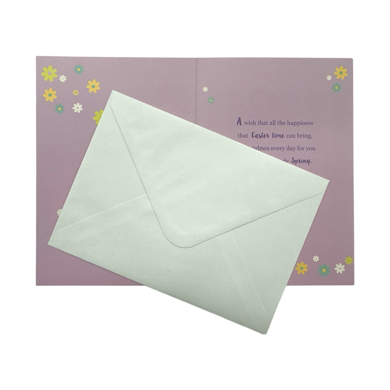 Send heartfelt Easter wishes with this Easter card, featuring an adorable lamb surrounded by a delightful burst of small flowers. This charming design captures the warmth, joy, and renewal of Easter, making it a perfect way to spread happiness to loved ones. Beautifully finished with embossed details and elegant foil accents, the card exudes both charm and sophistication. Complete with a coordinating envelope, it’s a thoughtful and cheerful way to share Easter blessings with family and friends. Card size: Approx. 19.5 x 14 cm.