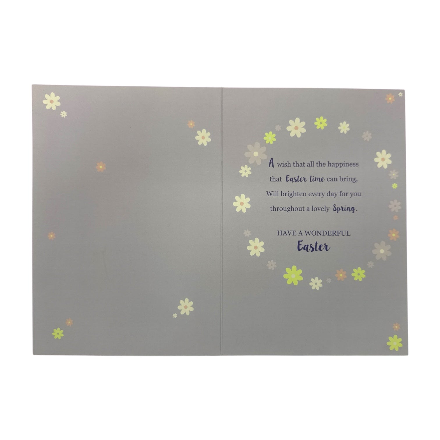 Send warm and cheerful Easter wishes with this Easter card, featuring an adorable baby chick surrounded by a delightful burst of small flowers. This charming design perfectly captures the joy and renewal of Easter, making it a wonderful way to brighten someone's day. Finished with embossed details and elegant foil accents, this card adds a touch of sophistication while maintaining its sweet and playful charm. Complete with a coordinating envelope, it's the perfect way to share love, happiness, and Easter blessings with family and friends. Card size: Approx. 19.5 x 14 cm.