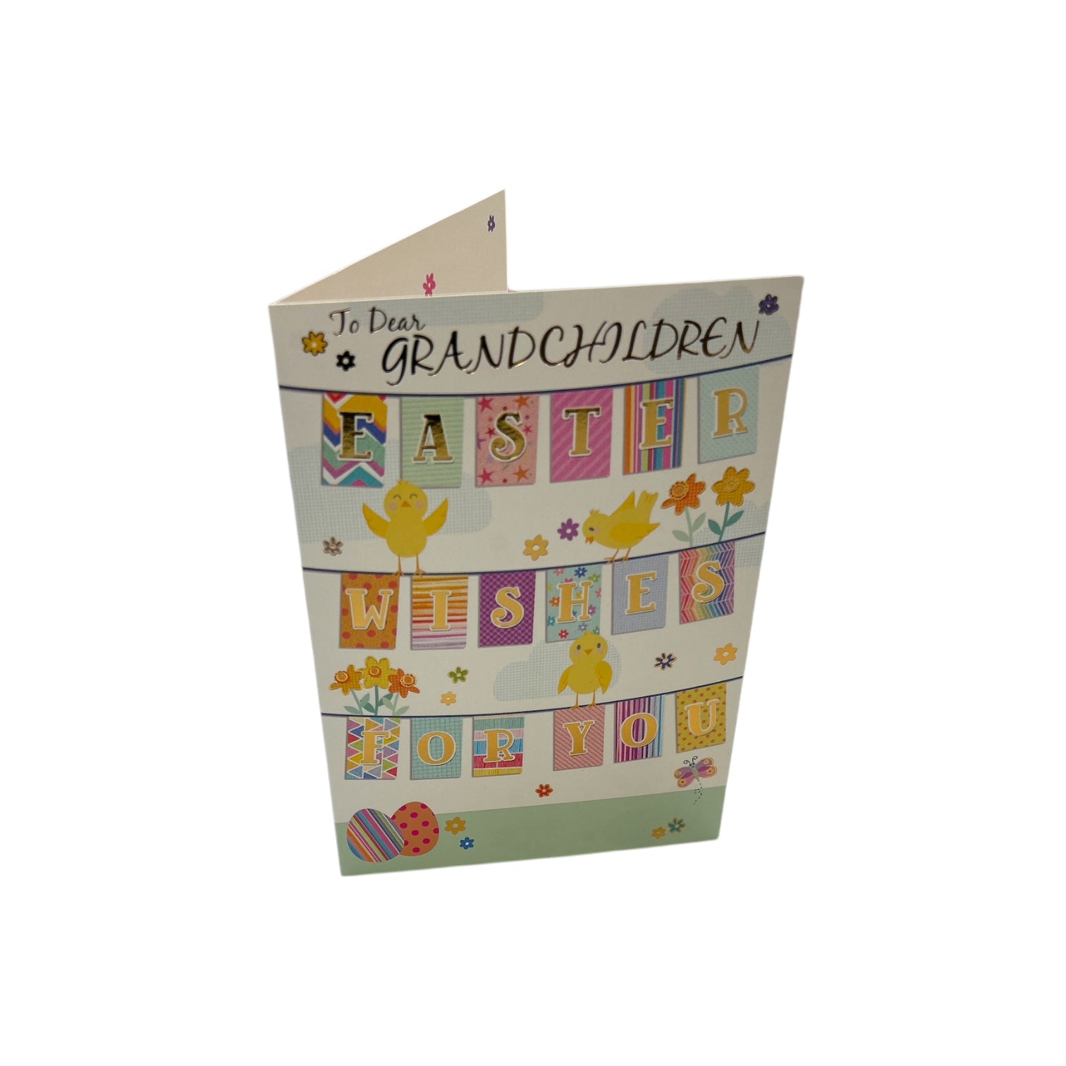 - To Dear Grandchildren Vibrant Patterns Bunting Design Easter Card