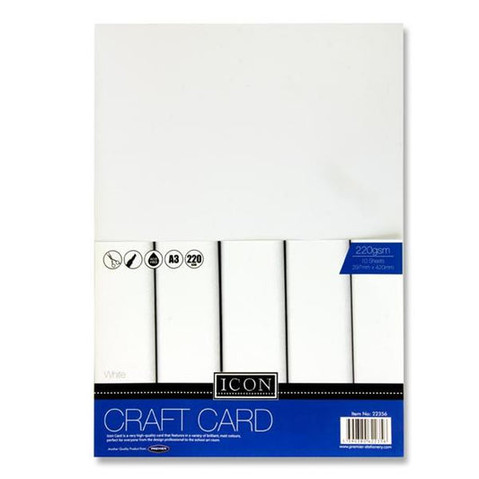 Pack of 10 A3 220gsm White Craft Card by Icon