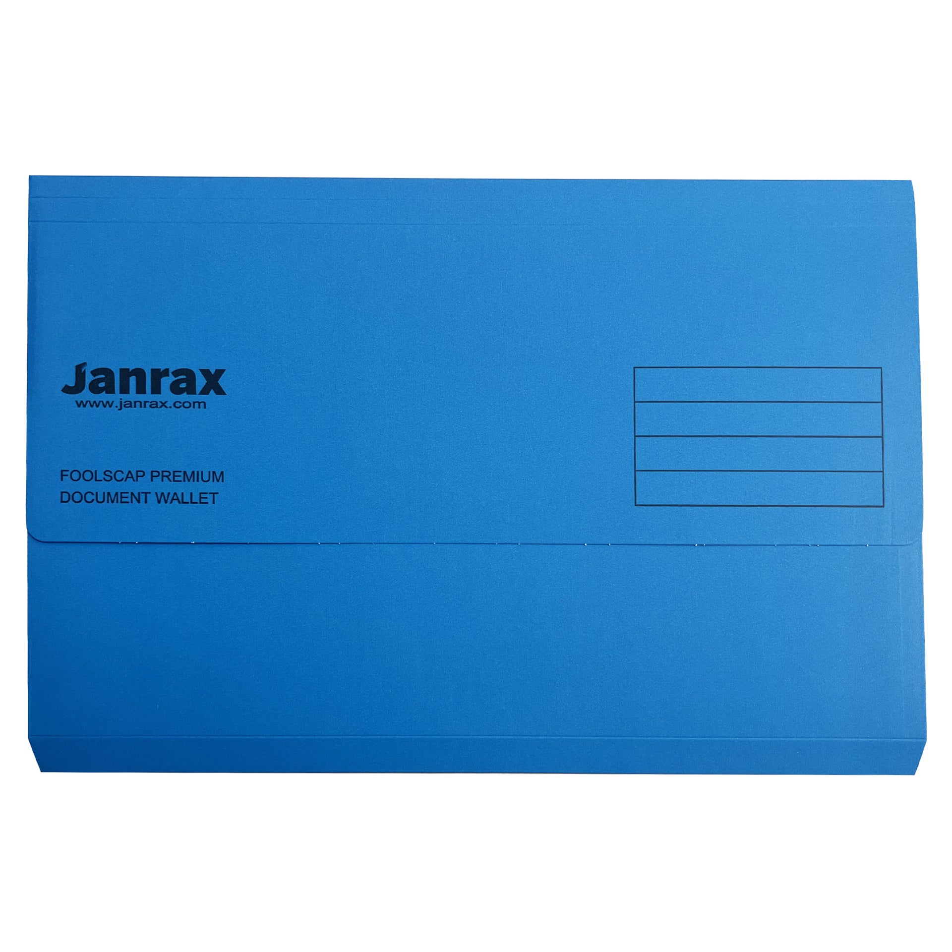Pack of 10 Blue Card Premium Foolscap Document Wallets. Keep your documents organised and secure with these premium foolscap document wallets. Measuring 345 x 238mm, they are ideal for storing both A4 and foolscap documents. Crafted from 210gsm premium card, these wallets are designed for durability and long-lasting use. The expandable gusset accommodates up to 250 sheets, making them perfect for large files or projects. A pre-printed labelling panel with guide lines on the front provides a clear, structured space for identifying contents. Available in vibrant colours, these wallets make it easy to sort and organise your paperwork. Stylish and practical, they are perfect for both personal and professional use.