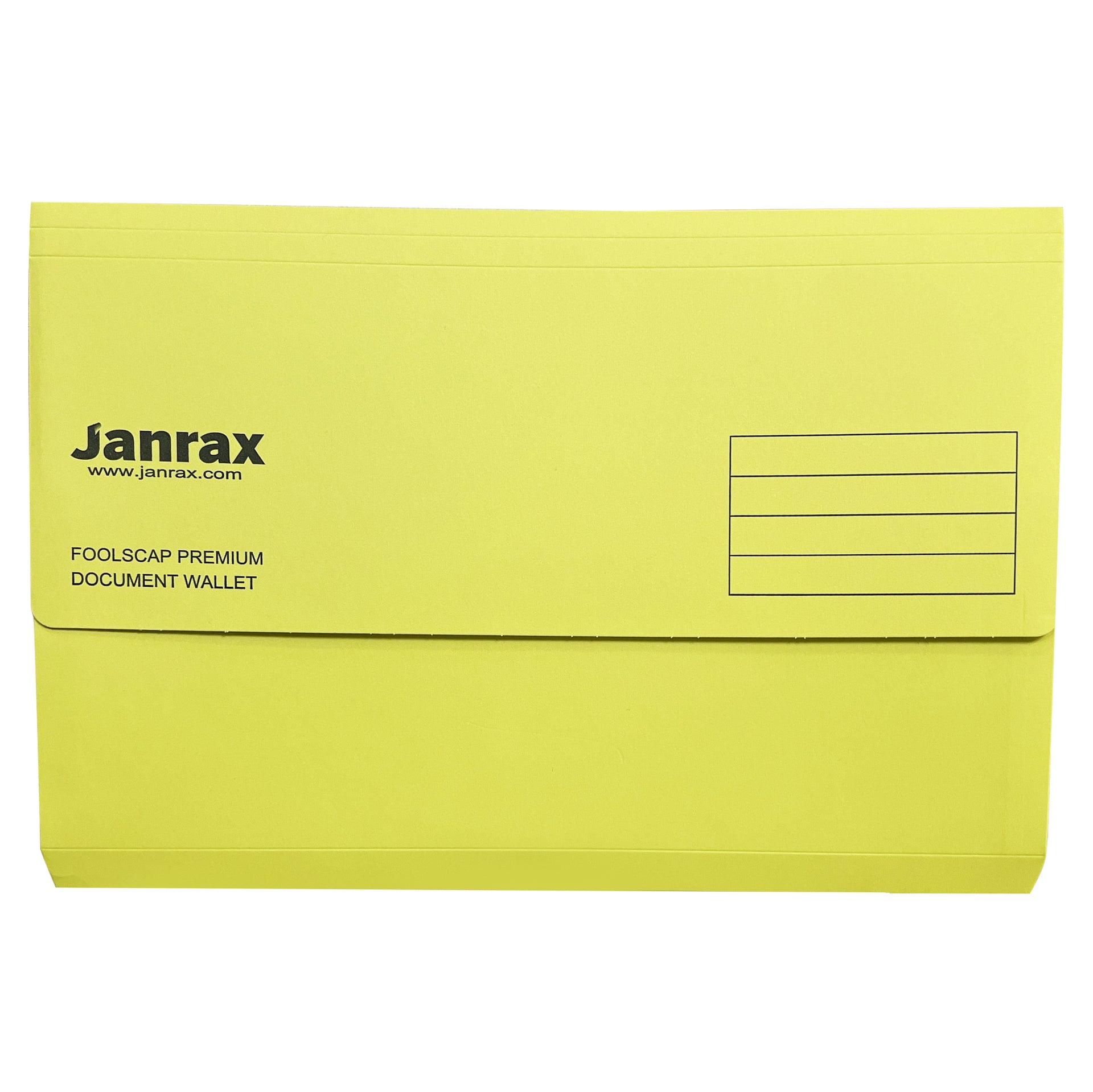 Pack of 10 Yellow Card Premium Foolscap Document Wallets. Keep your documents organised and secure with these premium foolscap document wallets. Measuring 345 x 238mm, they are ideal for storing both A4 and foolscap documents. Crafted from 210gsm premium card, these wallets are designed for durability and long-lasting use. The expandable gusset accommodates up to 250 sheets, making them perfect for large files or projects. A pre-printed labelling panel with guide lines on the front provides a clear, structured space for identifying contents. Available in vibrant colours, these wallets make it easy to sort and organise your paperwork. Stylish and practical, they are perfect for both personal and professional use.