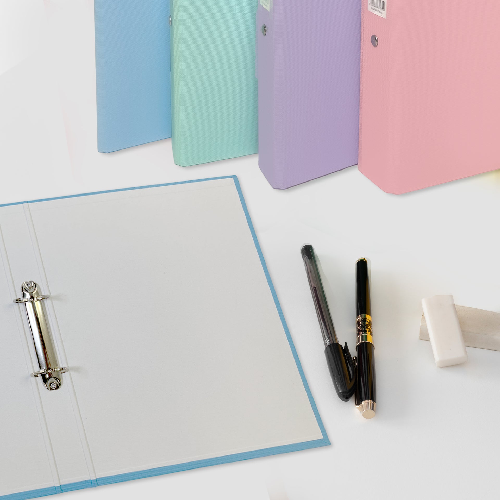 Organise your paperwork in style with the A4 Pastel Blue Paper Over Board Ring Binder by Janrax. Manufactured from strong 2.0mm board and finished with a smooth paper covering, this binder combines durability with a premium look and feel. Designed to hold A4 sheets securely (open size 545x320mm), it features a 35mm spine and a sturdy 2-ring mechanism to keep documents neatly in place. Perfect for school, home, or office use, the pastel blue finish brings a touch of soft colour to your workspace while keeping your files tidy and accessible.