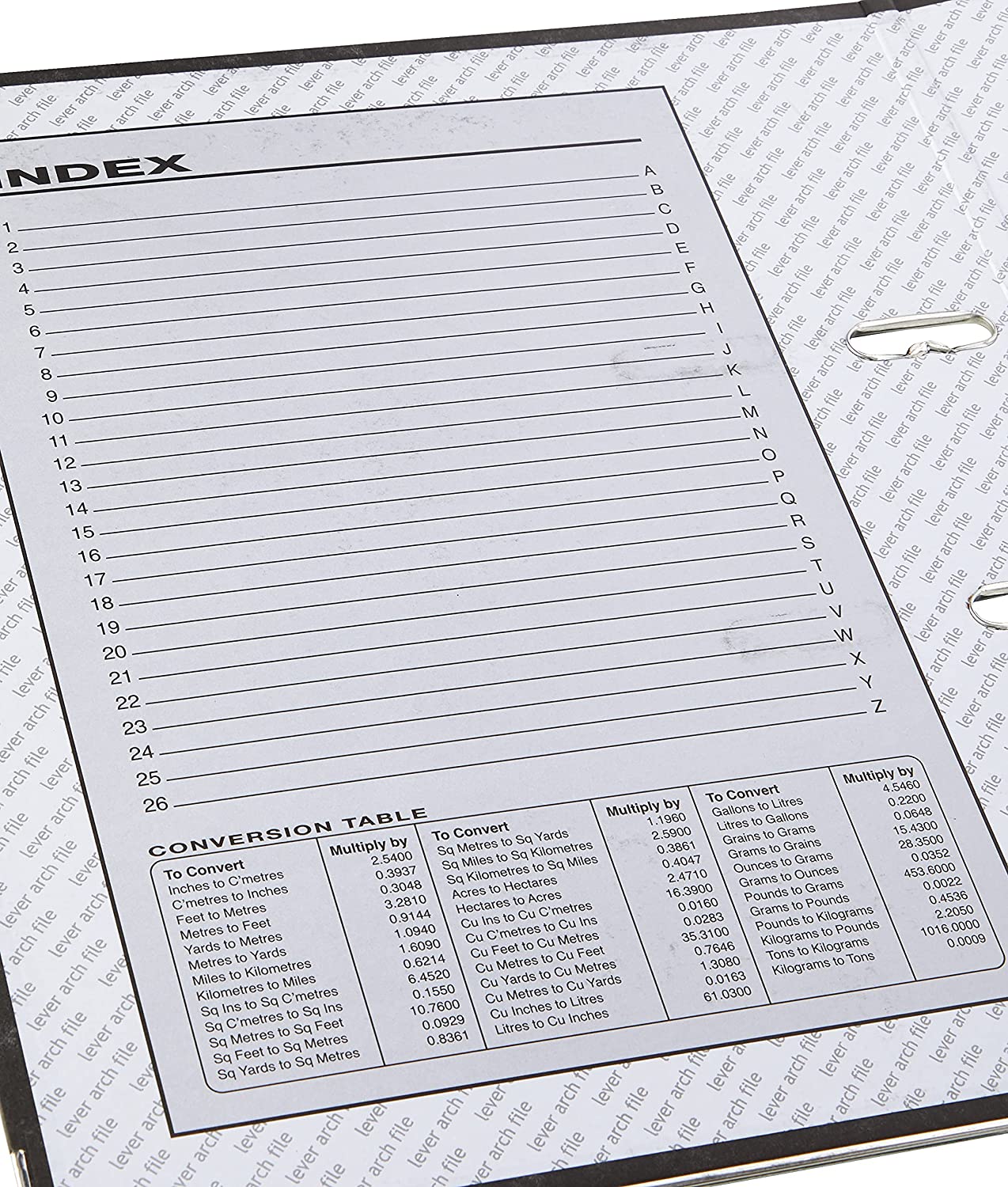 Q-Connect Lever Arch Files. Durable board files with a mottled cover large label area metal shoes eyelets to hold the file closed and a finger pull helps to retrieve your files easily. Size: A4.