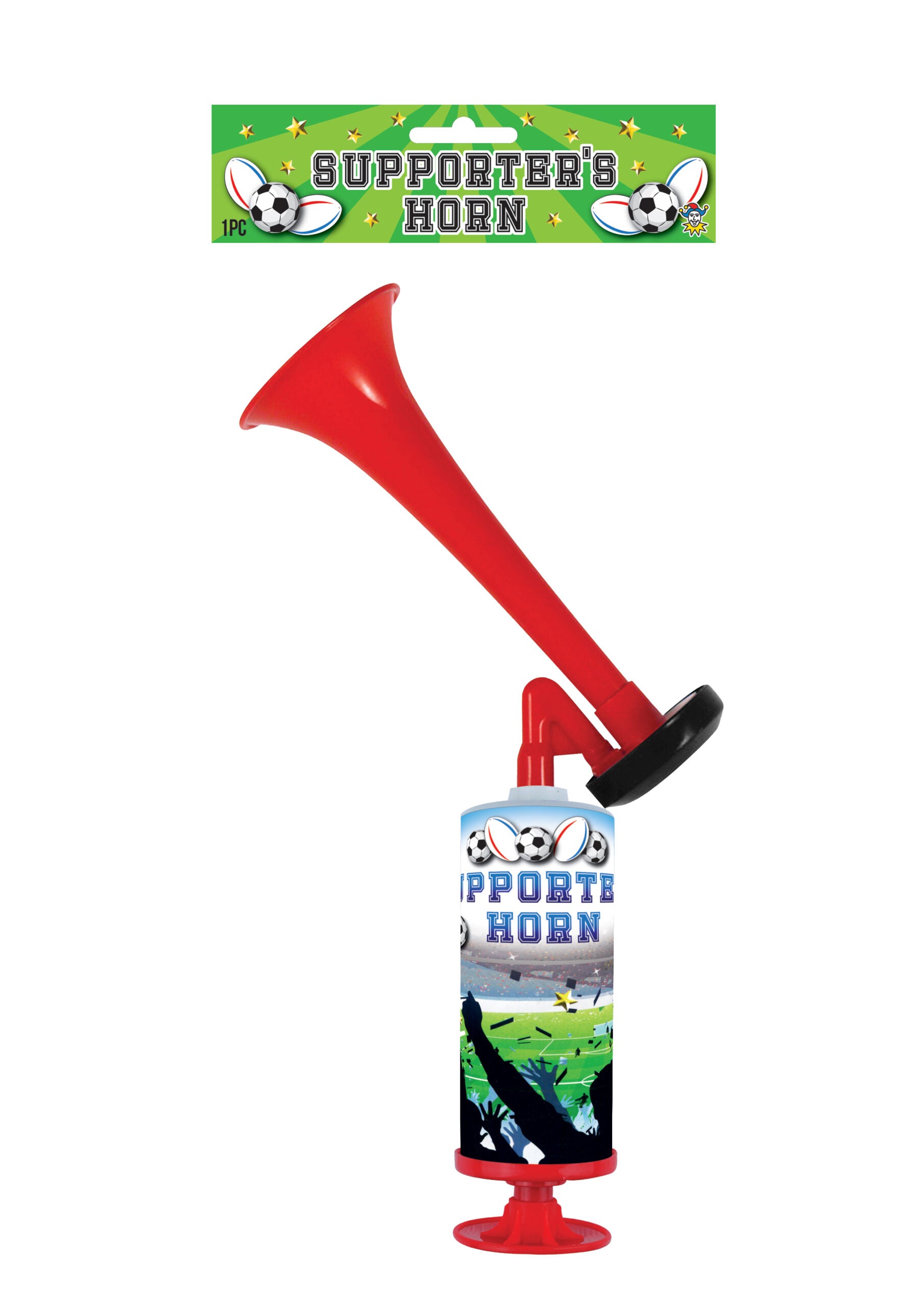 Party Time Supporter's Air Horn. Fun accessory for football games and sports events. Also great party prop. Colour: Red.