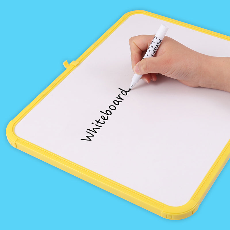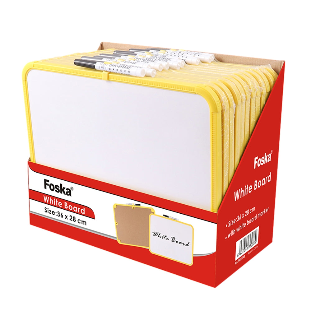 Whiteboard with Marker 36 x 28cm. Colour: white. Material: Wooden. Whiteboard with marker is a versatile and eco-friendly tool designed for educational, professional, and personal use. Constructed from durable PE material and reinforced with cardboard for added stability, this whiteboard offers writable surfaces, space for notes, drawings, and presentations. Its compact size makes it perfect for desktop use, providing a convenient space for jotting down ideas, to-do lists, or practicing handwriting and drawing. The whiteboard comes equipped with marker pen. The pen provides smooth writing on the whiteboard's surface. Lightweight and portable, whiteboard can be easily transported between home, office, and classroom settings. It represents an excellent blend of functionality and sustainability, making it a valuable addition to any workspace or educational environment.