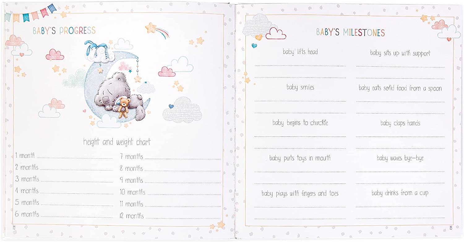 Document the special memories and moments from your pregnancy, birth and baby's first years and treasure them forever in this adorable Tiny Tatty Teddy baby journal. With a lovely gender-neutral design, this journal features sweet illustrations throughout of Tiny Tatty Teddy asleep on a cloud under a rainbow with the words 'So tiny, so small, so loved by all'. This is the perfect gift to celebrate the news of a new arrival, for an expectant mother or as a baby shower gift. Sections included for: Waiting for Baby, Birth of Baby, Coming Home, Settling in, Naming Baby, Our Lovely Family, Baby's Progress, Baby's Milestones, Bath Time, Bedtime, Walking & Talking, First Christmas, First Birthday, First Holiday, Favourite Things, Baby's Friends, Record of Health, Memorable Moments, First Day at School. Tiny Tatty Teddy is a loveable grey teddy bear with a blue nose and a warm heart. He has soft fur and cute patches, and he’s always looking for cuddles. This cute bear features across a lovely range of baby and toddler gifts, toys and clothes from Me to You. The gorgeous designs feature soft illustrations and neutral colours that suit both baby boys and baby girls. Features: - Tiny Tatty Teddy themed keepsake journal. - Perfect as a baby shower gift. - Perfect to use in a gift hamper. - Lovely gender-neutral design. Dimensions: 21.5cm H x 21.5cm W.