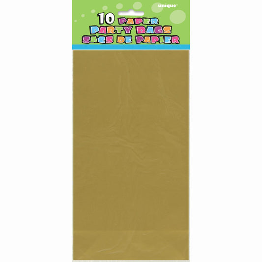 Pack of 10 Gold Metallic Paper Party Bags